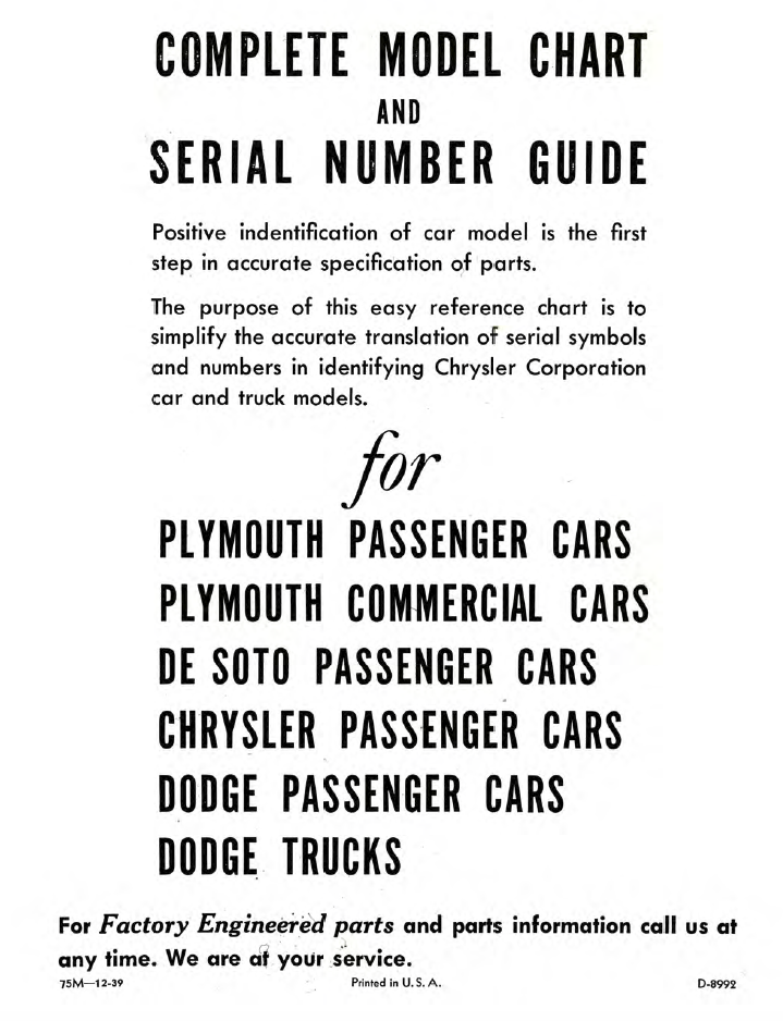 Chrysler Model Chart and Vin Number Guide 1914-1940
